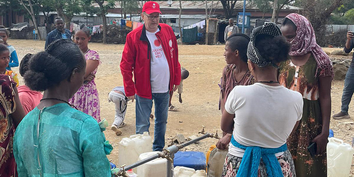„Anlässlich des Weltwassertages wird immer wieder betont: Wasser ist ein Menschenrecht. Der Zugang zu sauberem Trinkwasser und sanitären Einrichtungen ist die Voraussetzung für ein gesundes, menschenwürdiges Leben. Doch in vielen Ländern unserer EINEN Welt ist das sechste nachhaltige Entwicklungsziel (SDG6) nur ein Satz auf dem Papier. Blicken wir zum Beispiel in die Krisenregion Tigray, im Norden Äthiopiens. Hunderttausende Menschen sind dort auf fremde Hilfe angewiesen, um an sauberes Trinkwasser zu gelangen“, erinnert Reinhard Heiserer, Geschäftsführer der österreichischen Entwicklungsorganisation Jugend Eine Welt, anlässlich des „Weltwassertag“ am 22. März. Gemeinsam mit den Salesianern Don Boscos hat Jugend Eine Welt nach dem Ende des Bürgerkriegs in der Region Tigray daher mehrere Wasserentnahmestellen saniert und neu errichtet. Damit soll der Zugang zu lebensnotwendigem Trinkwasser sichergestellt werden. Allein in Adwa, einer Stadt mit rund 44.000 Einwohnerinnen und Einwohnern, versorgt ein neu errichteter Brunnen täglich über 10.000 Menschen mit Wasser.